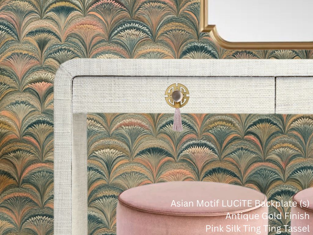 LUCiTE Backplate that is made to elevate existing cabinet knobs or create an entirely new look with our curated knob and backplate pairing. The furniture accessory is held in place when knob is attached. No tools required. Made to be collected, curated, and reimagined, our hand painted bespoke backplates will elevate a family heirloom with todays vibe.