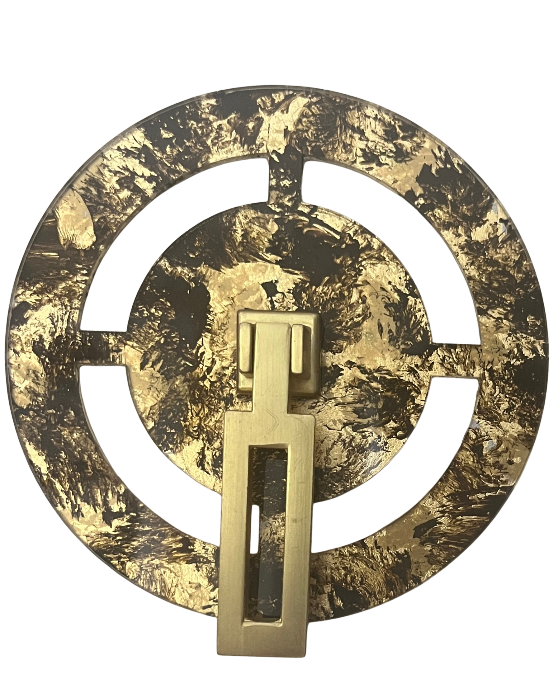 The Brennan LUCiTE Backplate can be used with your current or new cabinet knob. The LUCiTE Backplate is a furniture accessory that is simple to install. Simply remove your knob and slip backplate into place and screw knob back in.This Backplate has a classic silhouette shape that works with any design style. The simple shape pairs well with the our more detailed hand painted finishes. Brennan (L) in Tortoise finish with the emerald hex knob, Brennan (S,L) in Antique Gold finish with Blackened Bronze Tassel Knob (S,L) , or Brennan (s) in Black with Black Obsidian knob are great options for your space. (S)2.7″ (L) 5″
